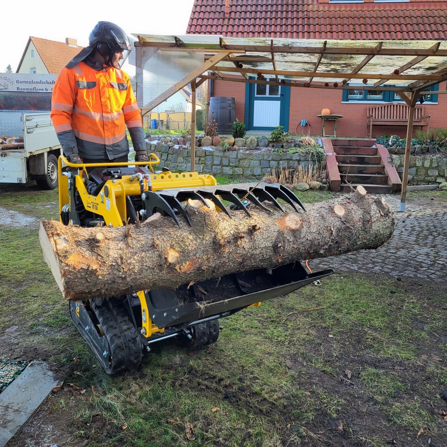 Ein Gartenbau-Notdienst sichert gefährdete Bäume, entfernt Äste und repariert beschädigte Bereiche nach Unwettern.